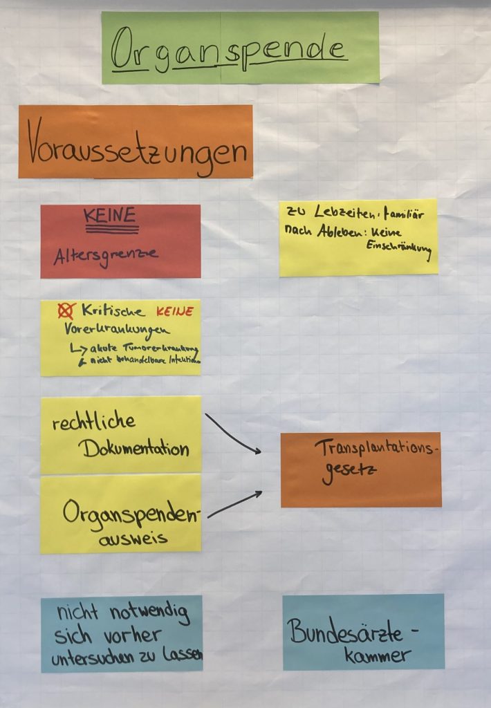 Die Präsentation ist ein Beispiel und funktioniert gut in meinem Kurs. Stimmt euch gerne mit euren Praxisanleitern ab, ob es eine Musterpräsentation bei euch vor Ort gibt. Die Videos zum Organspendeausweis und zur DKMS findet ihr auch in der Präsentation und könnt sie dort gerne rauskopieren.