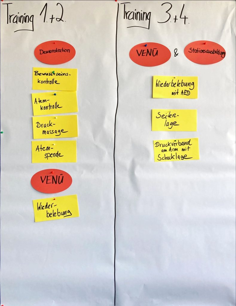 Hier findet ihr meinen Erste-Hilfe-Kurs. Nutzt gerne die Check- und Packliste, die Rollenspielkarten, die Checklisten für die Stationstrainings. Es sind meist Word-Dokumente, die ihr gerne an eure Bedürfnisse anpassen könnt.